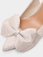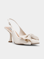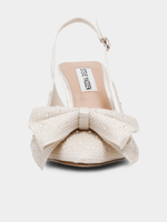Calling all brides-to-be (whether youve been proposed to or not). Introducing the breathtaking NEASA in ivory pearl. This stunning slingback kitten heel is perfect for your special day to keep you looking gorgeous and staying comfy all night long. The bow detailing adds a stunning pop to the bottom of your gown.