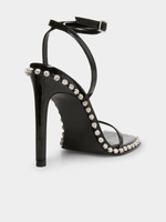 Add a dose of glam to your night out look with the ZELLE High Heel Sandals! Shiny patent faux leather shapes these sexy heels that have a square toe footbed, slender toe strap, and a matching ankle strap that wraps around the ankle and secures with a shiny silver buckle.