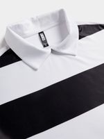 For the ultimate cozy vibe, cop this dope sweat top featuring a black & white striped fleece fabric, collar & cropped fit . Layer it with dad jeans and and a fiyah bomber for a hot look.