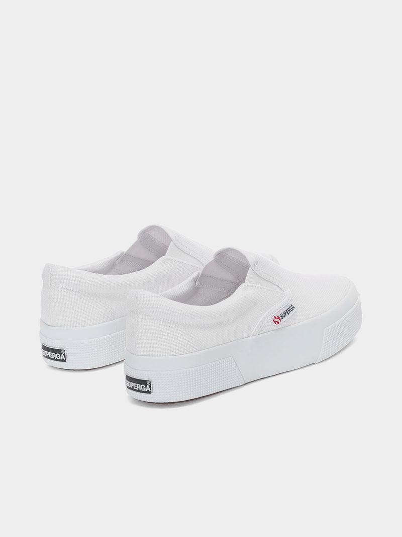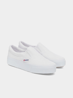 Superga 2740 is the contemporary Platform gifted with a comfy and practical fit thanks to the slip-on design. With its 3.5 centimeters sole and its dainty silhouette, this sneaker can elevate every casual daily look. The cotton canvas upper provided with side elastic bands and the two-tone jacquard logo confirm the stylistic codes of the brand.