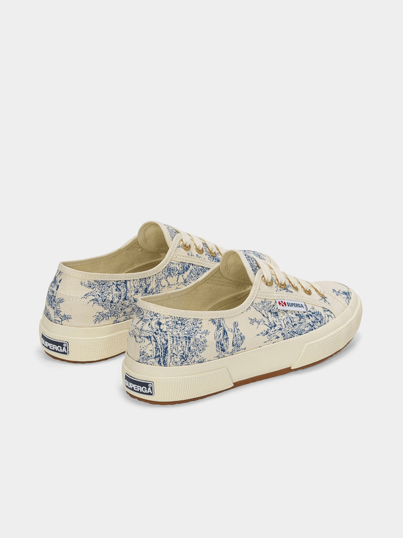 A sporty silhouette infused with feminine appeal – these Superga 2750 sneakers turn heads with upper in toile de jouy cotton fabric. Notice a host of Superga’s signature features: cotton laces, a logo tag on the side and a sturdy, vulcanised sole in natural rubber