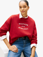 Stay cozy and stylish in this Tommy Hilfiger Red Fleece Sweatshirt. Made from a soft cotton blend, it features the iconic Tommy Hilfiger logo for a classic touch. Perfect for lounging or running errands, this sweatshirt is a must-have addition to your wardrobe. Classic comfort with a touch of fashion flair.