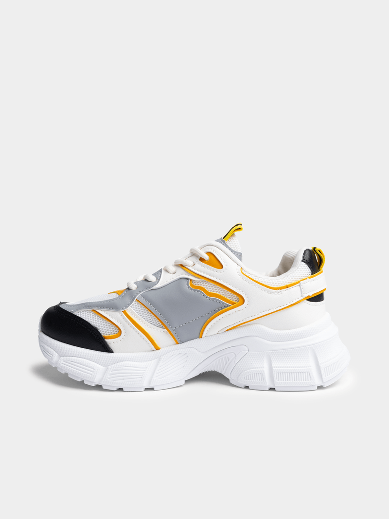 The TomTom Mega sneaker in white and orange is crafted with durable PU fabric. Enjoy comfort and style with this versatile shoe. Not just for kids or furniture. This trendy sneaker is perfect for everyday wear and is easy to return if needed.