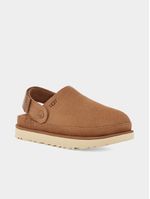 If you are reaching for a clog, you'll want comfort, and the Goldenstar Clog delivers! The heel strap features a swivel design for a 2-in-1 wearing option -- wear it as a heel strap or stacked on top of the vamp for a stylish option. An ultra-lightweight outsole provides all-day cushion and support. The outsole of this product is either a SugarSole™ outsole, which is a responsible compound using sugarcane foam that allows us to reduce dependency on fossil fuels by replacing petroleum-based ethylene, or a Treadlite by UGG™ outsole.