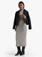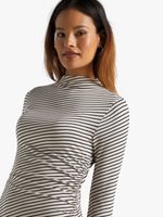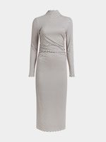 Elevate your style game with this chic white & black striped bodycon dress. Pair with knee high boots and a biker jacket for a look we love.