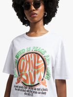 This tee is what we're vibin' with this szn. Featuring a white single jersey fabric, front graphic print and short sleeves. Pair with jeans and sneaks to complete the look.
