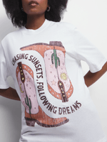 This tee is what we're vibin' with this szn. Featuring a white single jersey fabric, front graphic print and short sleeves. Pair with jeans and sneaks to complete the look.