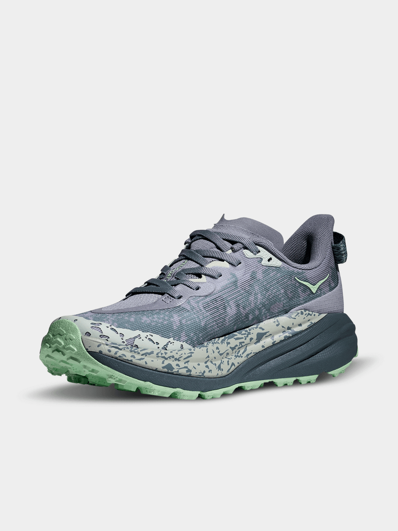 A grippy, responsive ride for technical terrain. There’s only one GOAT on the trail. And this is it. Combining HOKA’s tried and true cushioning with aggressive traction and ultralight materials, the Speedgoat 6 was born to tame the trail. A workhorse for technical terrain, this recent reissue was refined with a breathable woven textile upper, foot-hugging internal chassis, plusher dual gusset tongue, and revised lug orientation inspired by the hoof of a goat (what else?)