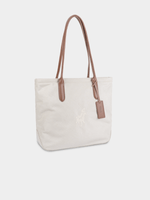 The Spectator Tote exudes an air of understated yet captivating style. The long shoulder handles provide all-day comfort while the zipped main section has plenty of space for all daily essentials and includes an inner zip section. For added convenience and easy access there is an outer back zipped pocket as well. The Polo Spectator collection has been crafted using a soft woven material in subtle shades of Stone, Sage and Peat with an embroidered iconic Polo logo. The chic tan handles and trim on the zip pullers as well as a tan Polo charm showcase meticulous attention to detail.