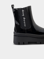 A high-shine update to a classic style, these black patent Chelsea boots are both edgy and sophisticated. Perfect for adding a polished finish to your favourite autumn outfits.