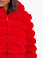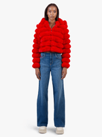 Make a statement with the Sweet cropped faux fur jacket in vibrant red. This playful and glamorous piece from Sissy Boy adds a touch of luxe and a pop of colour to any outfit.