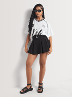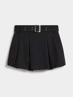 A pleated mini is a trending style this season. Embrace the look with the Y&G Belted Pleated Mini Skirt. The wide double rivet belt gives it an edgy look while the wide pleats complete the style. Wear it with a baby tee and chunky loafers, or an oversized cotton shirt and pumps.