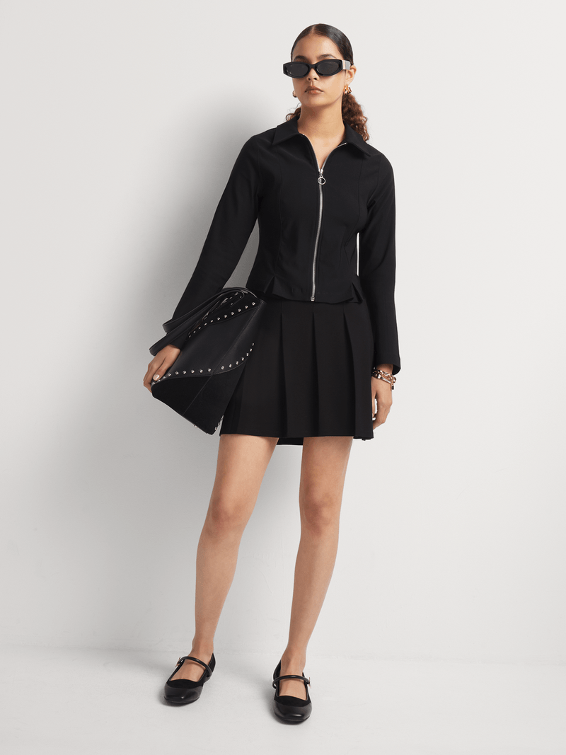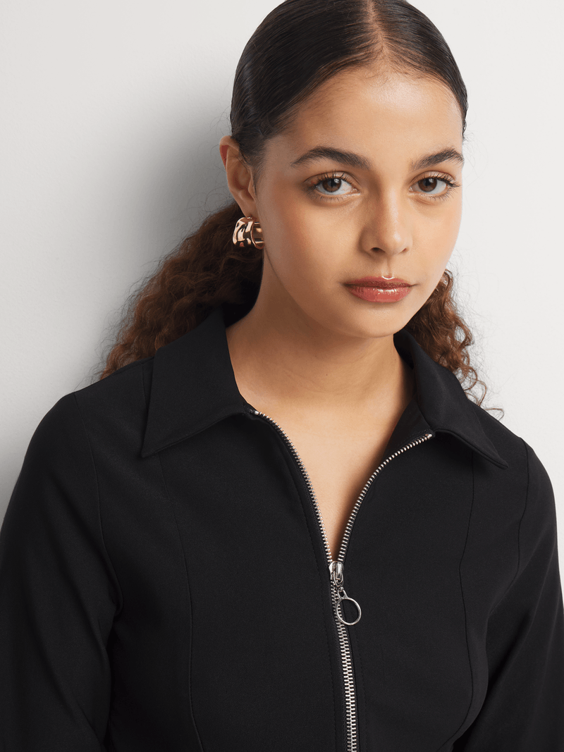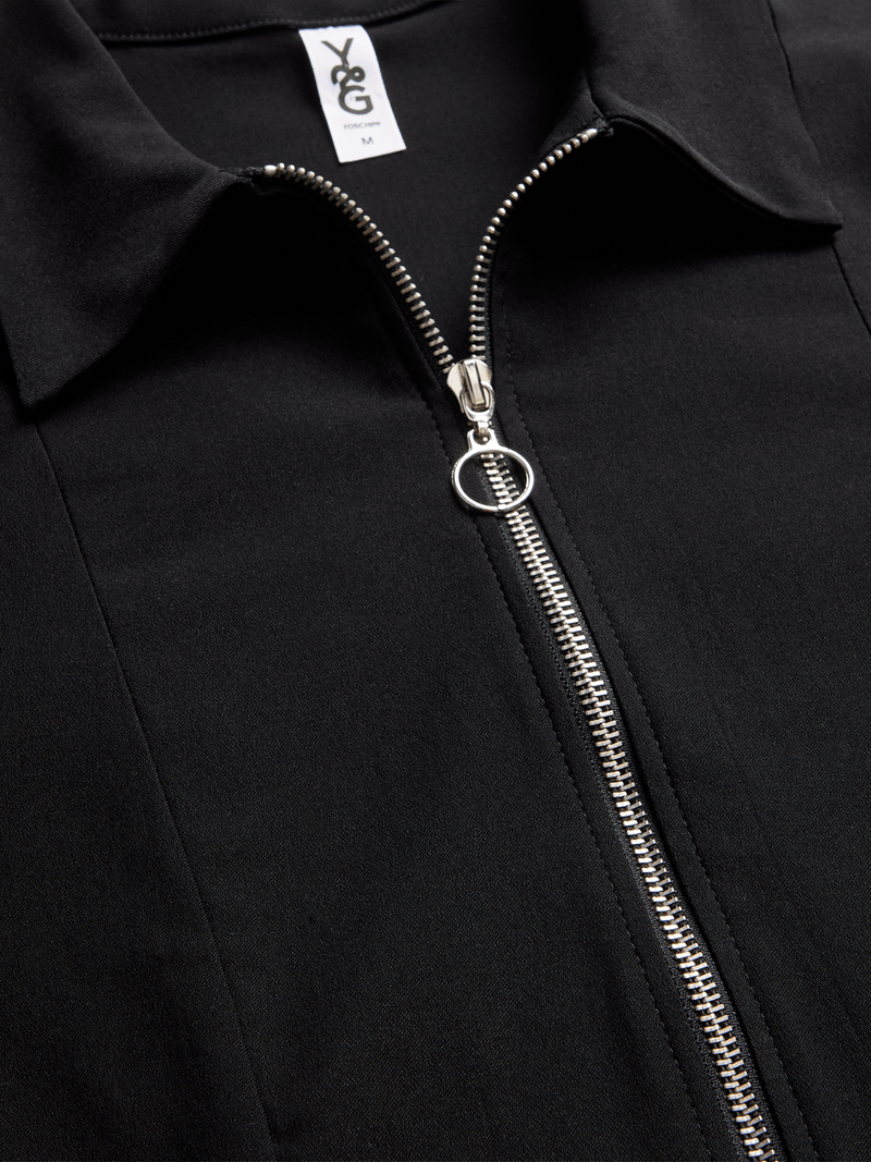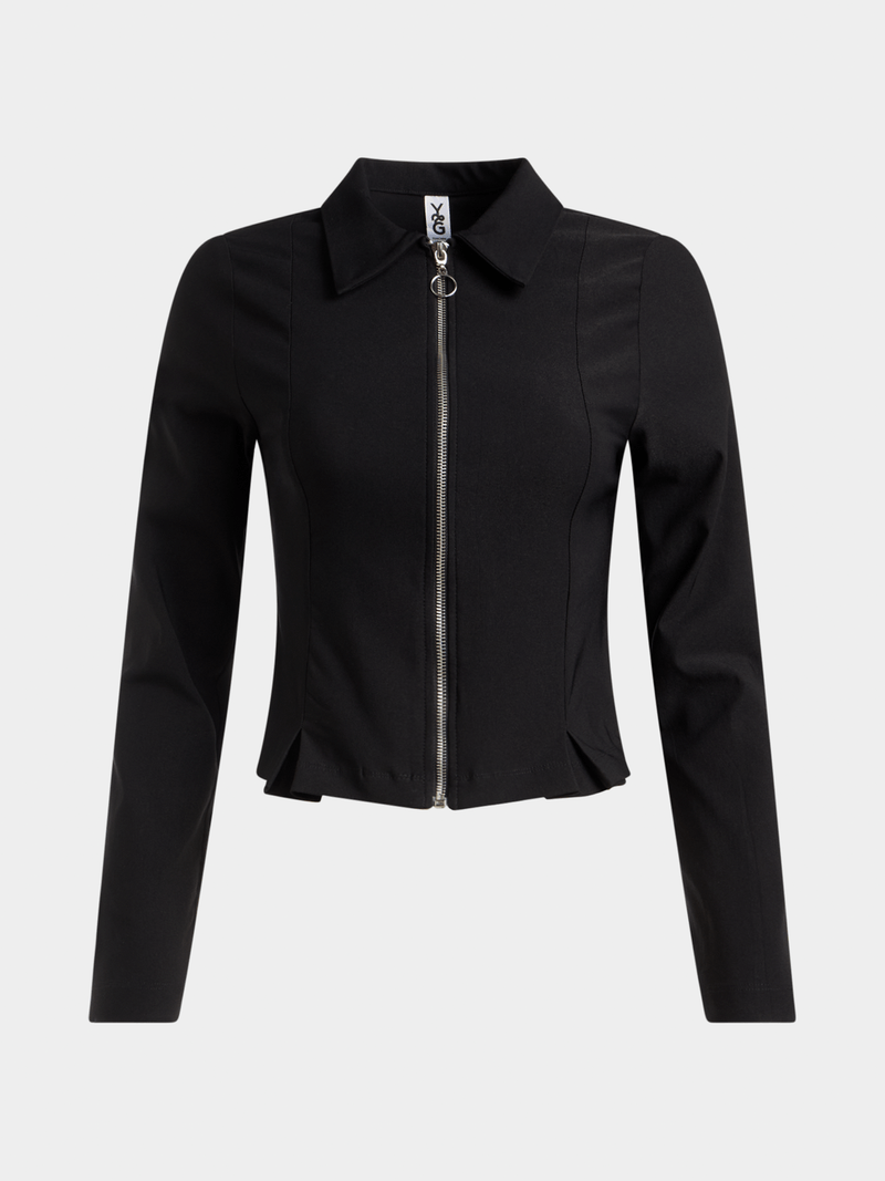 The Y&G Fitted Zip Through Long Sleeve Shirt is an on-trend update for your winter style. The figure-hugging fit and zip-through front offers a fresh update on a wardrobe classic. Wear it with wide-leg pants, a maxi skirt, or a pleated mini.