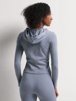 Update your basics with this on-trend Y&G Hooded Long Sleeve Rib Top. This fitted top is the perfect partner to baggy bottoms like the season's must-have cargo pants and wide-leg sweat pants.