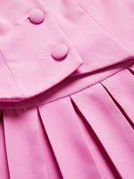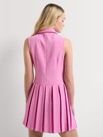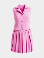 This Y&G Pleated Shift Waistcoat Dress is a fun take on the suiting trend. This cute mini looks like a two-piece set, but is all-in-one for easy styling. Wear it with mesh pumps and a monogram shoulder bag.