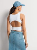 The Y&G Polyamide Open Back Vest is a great basic that's both versatile and interesting with its open-back detail. Wear it with everything from wide-leg jeans to cargo pants and maxi skirts.