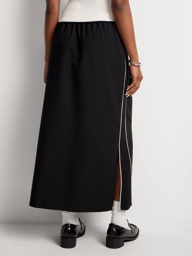 Lean into the athleisure trend with the Y&G Tipping Midi Pencil Skirt. This sportswear-inspired midi has a high-rise elasticated waist with an adjustable drawstring and contrast piping detail. Wear it with a fitted athleisure top and complete the look with fresh kicks.