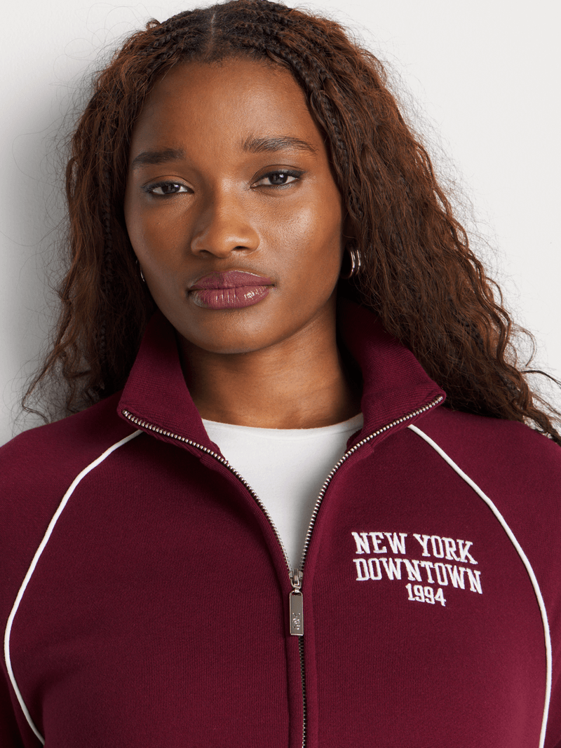 The Y&G Tipping Zip Through Sweat Top has an on-trend retro-inspired style with contrast piping tipping detail and graphic detail on the chest. Pair it with the matching bottoms for a co-ord set.