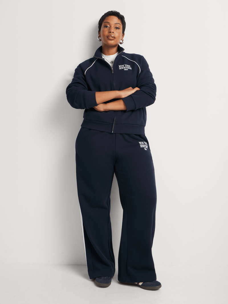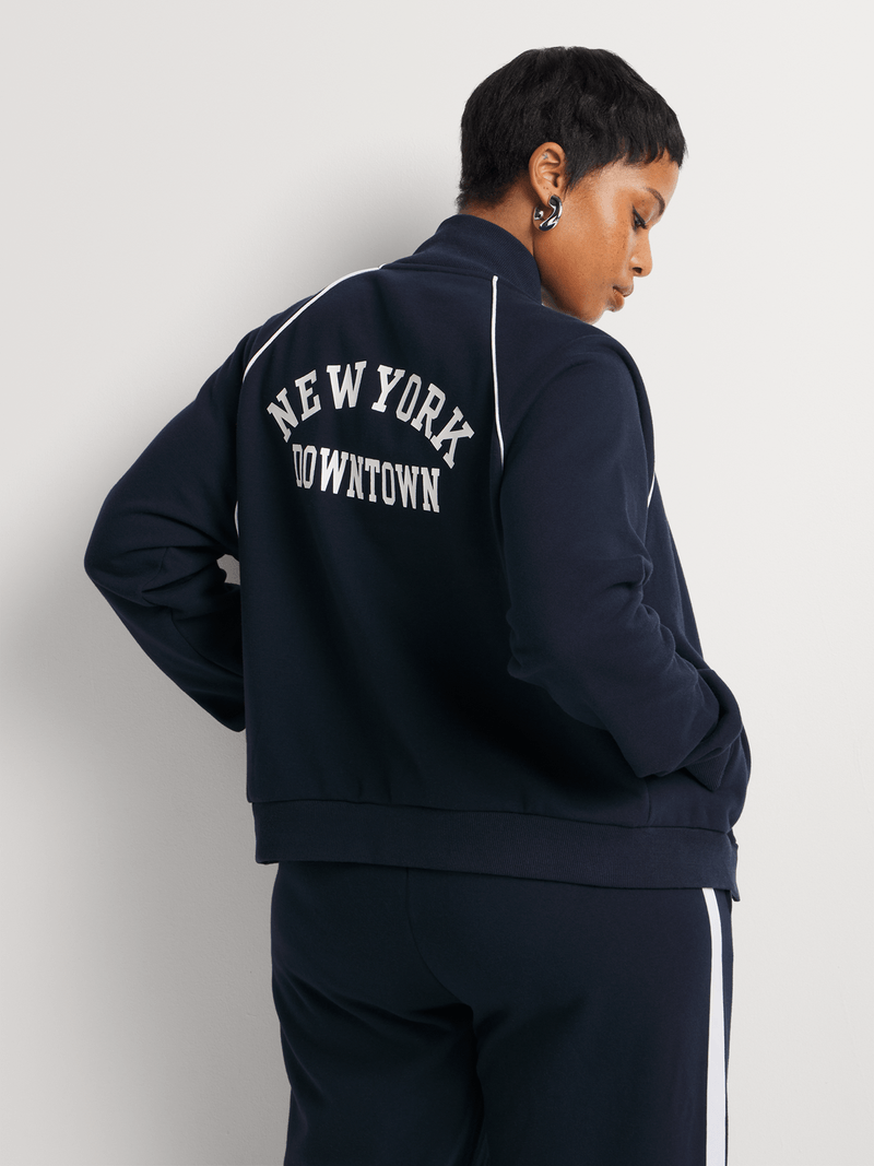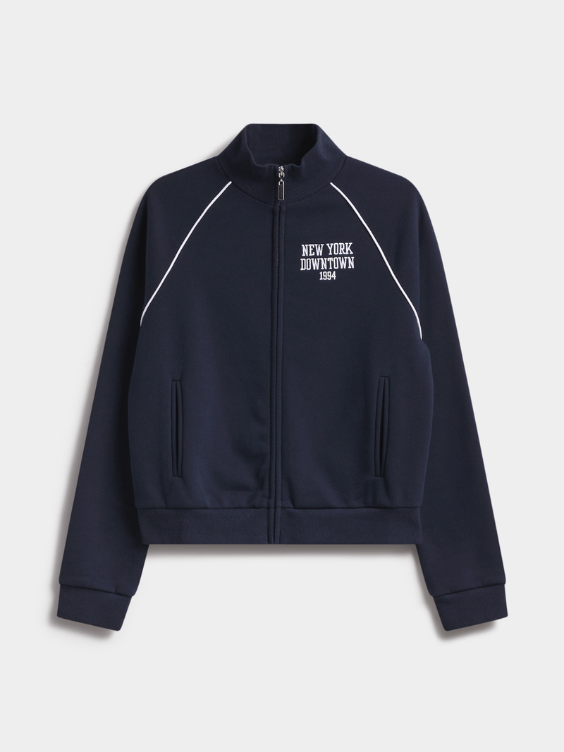 Stay warm and on-trend with the Y&G Tipping Zip-Through Sweat Top. Contrast piping and a graphic print on the chest give it retro-inspired style. Wear it with the matching bottoms for a coord set.