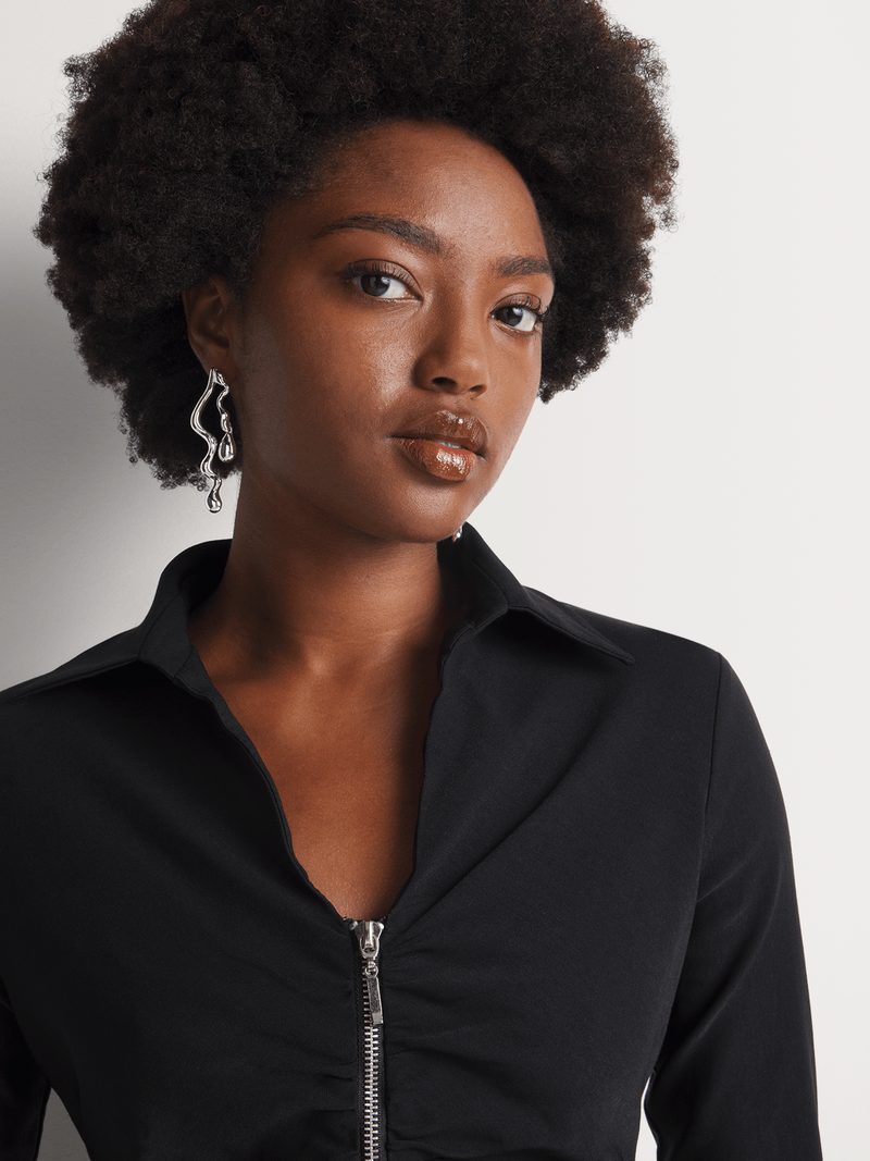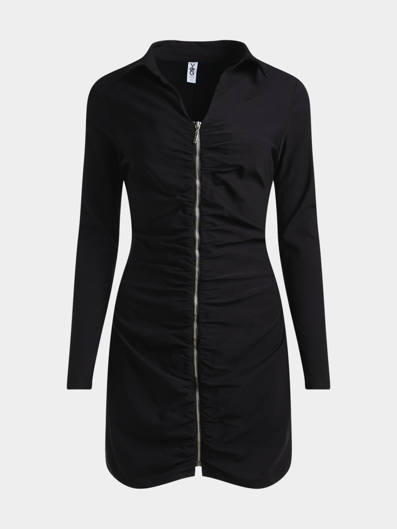 Update your dress collection with the Y&G Zip Through Shirt Dress. Form-fitting and on-trend, wear this long-sleeved mini with over-the-knee boots or strappy heels for a night out.