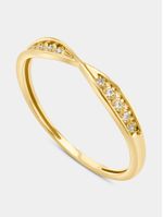 Expertly crafted in 9ct Yellow Gold, this intriguing ring features an elegantly twisted band enhanced by pavé set Diamonds.