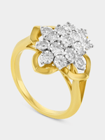 Expertly crafted in 9ct Yellow Gold, this opulent ring features a bloom-inspired cluster glittering with round-cut Earth Grown Diamonds in illusion settings. The total Diamond weight is 0.50 carats.