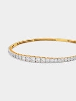 Expertly crafted in 9ct Yellow Gold, this beautiful bangle features a glittering voyage of graduated full-cut Diamonds. The total Diamond weight is 1 carat.