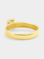 Expertly crafted in 9ct Yellow Gold, this beautiful ring features a round-cut Lab Grown Diamond solitaire enhanced by a stylish broad band. The total Diamond weight is 1 carat.