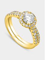 Expertly crafted in 9ct Yellow Gold, this opulent twinset ring features a 0.65 carat round-cut Lab Grown Diamond solitaire, a bridge detail below the gallery and bands sparkling with pavé set stones. The total Diamond weight is 1.33 carats.