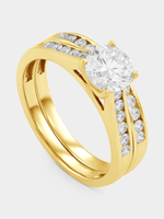 Expertly crafted in 9ct Yellow Gold, this beautiful ring features a round-cut Lab Grown Diamond solitaire and bands glittering with channel set stones. The total Diamond weight is 1.50 carats.