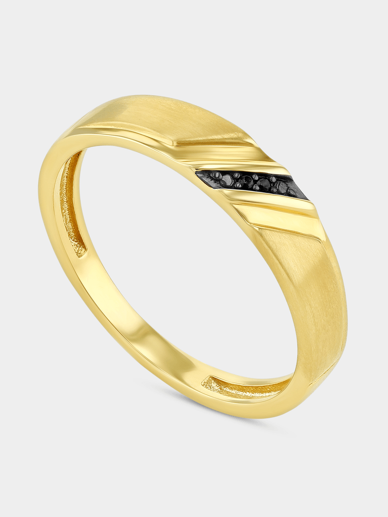 Expertly crafted in 9ct Yellow Gold, this elegant dual texture ring features a diagonal design enhanced by pavé set Black Diamonds.