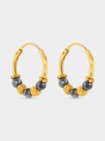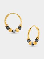 Expertly crafted in 9ct Gold, these beautiful wari hoop earrings feature eye-catching faceted black beads.