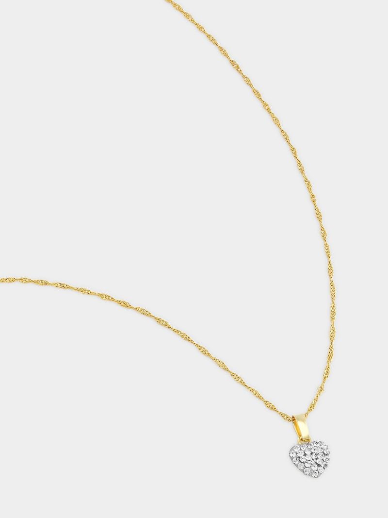 Expertly crafted in 9ct Yellow Gold romantic heart pendant, glitters with pavé set crystals on a Sterling Silver and 9ct Yellow Gold bonded together chain,
