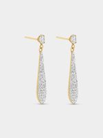 Expertly crafted in 9ct Yellow Gold,and Sterling Silver bonded together, these radiant tear drop earrings catch the light with pavé set Crystals.