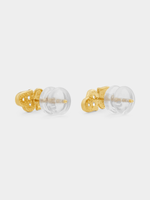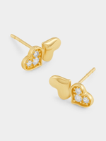 Expertly crafted in 9ct Yellow Gold, these romantic double heart stud earrings glitter with pavé set Cubic Zirconia and feature silicone backs for all day comfort.