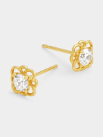 Expertly crafted in 9ct Yellow Gold, these beautiful flower stud earrings feature round-cut Cubic Zirconia solitaires.
