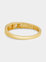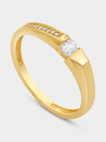 Expertly crafted in 9ct Yellow Gold, this alluring ring features a round-cut Cubic Zirconia solitaire and a glittering row of pavé set stones. A matching ring for that special someone is also available in store.