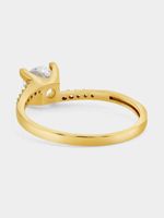 Expertly crafted in 9ct Yellow Gold, this radiant ring features a round-cut Cubic Zirconia solitaire and an elegantly twisted band sparkling with pavé set stones.