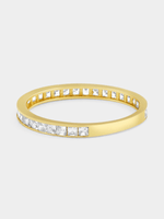 Expertly crafted in 9ct Yellow Gold, this beautiful eternity ring features a glittering voyage of square-cut Cubic Zirconia.