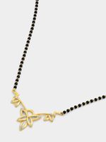 Expertly crafted in 9ct Yellow Gold, this beautiful 45cm long black bead Mangalsutra Necklace features a vine-inspired pendant glittering with pavé set Cubic Zirconia.