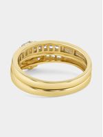 Expertly crafted in 5ct Yellow Gold, this beautiful twinset ring features a cluster of round-cut Created White Sapphires and Diamonds in a halo setting and bands sparkling with channel set stones.