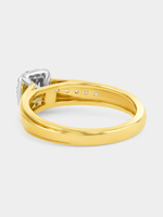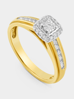 Expertly crafted in 9ct Yellow Gold, this beautiful ring features a full-cut Earth Grown Diamond in an cushion-shaped halo setting and a band glittering with channel set stones. The total Diamond weight is 0.17 carats.