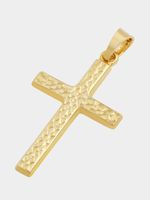 This beautiful cross pendant is enhanced by a diamond cut design. This pendant is off chain.