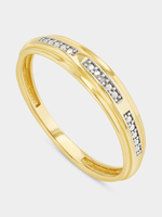 Expertly crafted in 9ct Yellow Gold, this stylish ring features a trio of intricately beaded horizontal bars enhanced by an Earth Grown Diamond accent and elegant beveled edges.