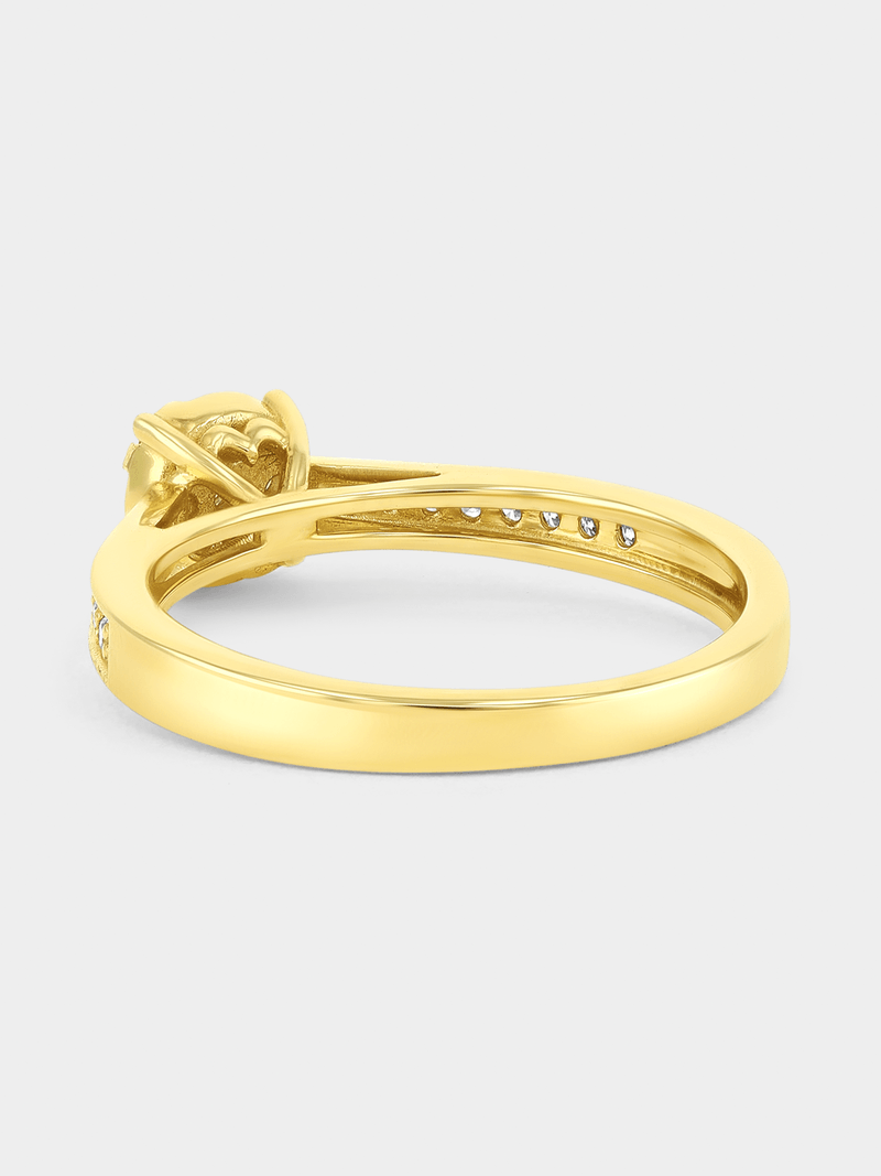 Expertly crafted in 9ct Yellow Gold, this beautiful ring features a round cluster of round-cut Earth Grown Diamonds in a solitaire illusion setting and a band glittering with pavé set stones. The total Diamond weight is 0.24 carats.