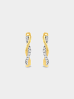 Expertly crafted in 9ct Yellow Gold, these elegantly twisted 14mm hoop earrings glitter with pavé set round-cut Earth Grown Diamonds. The total Diamond weight is 0.10 carats.