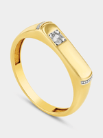 Expertly crafted in 9ct Yellow Gold, this stylish rectangle signet ring features a round-cut Lab Grown Diamond solitaire in a square setting and is enhanced by an intricately beaded corner.