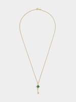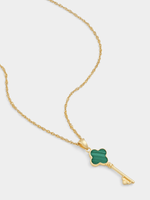 Expertly crafted in 9ct Yellow Gold, this beautiful clover key pendant on a chain is inlaid with Malachite.