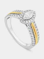 Expertly crafted in 9ct Yellow Gold and Sterling Silver, this beautiful ring features a marquise-cut Lab Grown Diamond in a halo setting and a split-shank band glittering with pavé set stones. The total Diamond weight is 0.80 carats.