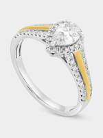Expertly crafted in 9ct Yellow Gold and Sterling Silver, this beautiful ring features a pear-cut Lab Grown Diamond in a halo setting and a band glittering with pavé set stones. The total Diamond weight is 0.80 carats.